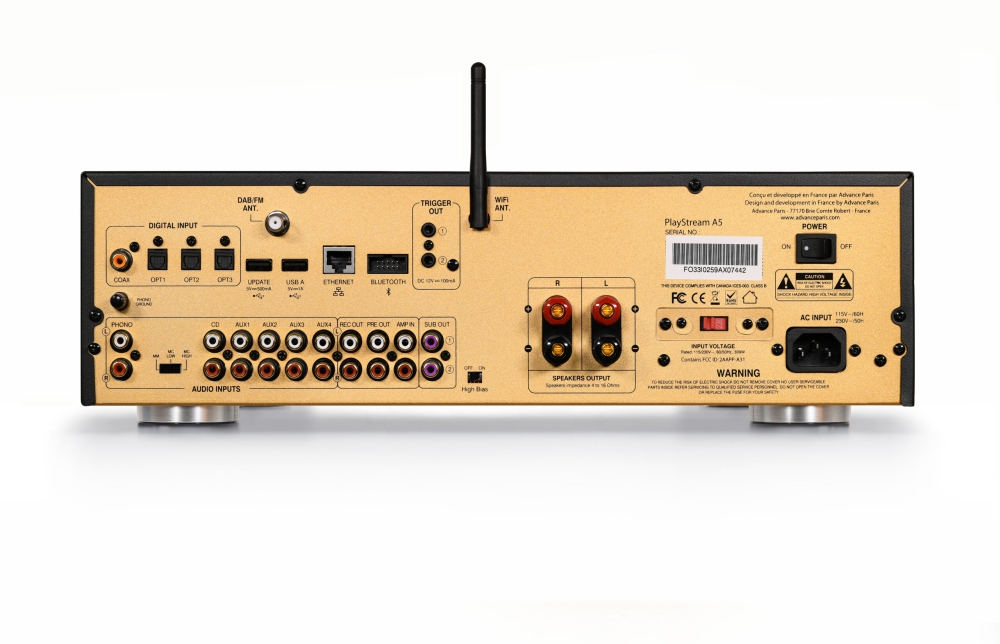 Ein Merkmal des Advance Paris ist die HIGH BIAS-Schaltung, die es dem Verstärker ermöglicht, bei niedrigeren Leistungspegeln (bis zu etwa 10 % der Gesamtleistung) als Class-A-Verstärker zu arbeiten, was für den normalen Gebrauch mehr als ausreichend ist. Wenn mehr Leistung benötigt wird, schaltet der Verstärker geräuschlos auf Class AB um. Audiophile schätzen die subtile Musikwiedergabe im Class-A-Modus. HIGH BIAS kann auf der Rückseite ein- und ausgeschaltet werden, so dass der Benutzer entscheiden kann, welche Einstellung in Kombination mit den angeschlossenen Lautsprechern das beste Hörerlebnis bietet. Mit 2 x 80 W an 8 Ohm (2 x 130 W an 4 Ohm) liefert der Playstream A5 mehr als genug Leistung, um auch Lautsprecher mit niedrigem Wirkungsgrad zu betreiben.