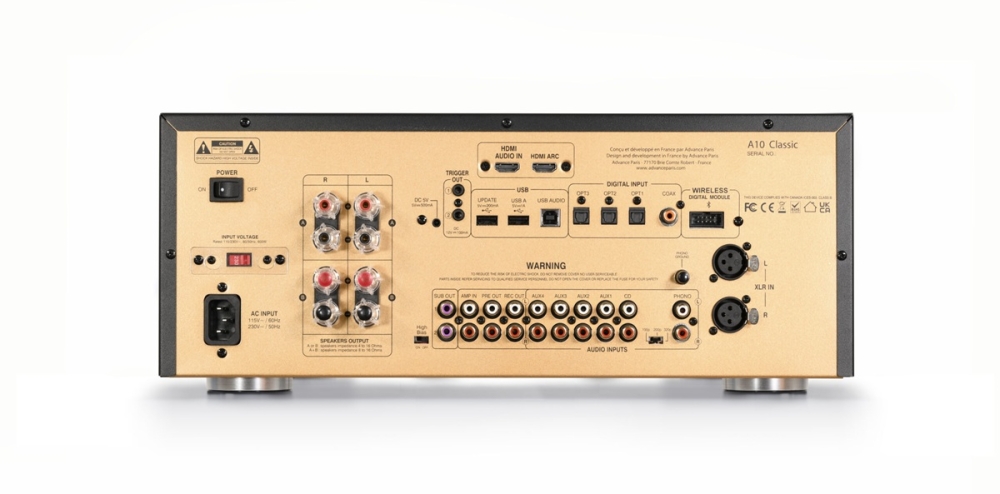 In der Vorstufe kommen Vakuumröhren zum Einsatz, um den audiophilen Charakter dieses Geräts zu unterstreichen. In der Endstufe werden keine Röhren verwendet, da Advance Paris auf ausreichende Leistung, Dynamik und Zuverlässigkeit setzt. Der Advance Paris A10 Classic liefert 2 x 130W (8 Ohm), 2 x 190W (4 Ohm) oder 2 x 250W (2,66 Om). Eine Besonderheit von Advance Paris ist die HIGH BIAS-Schaltung, die es dem Verstärker ermöglicht, als Class-A-Verstärker bei niedrigeren Leistungspegeln zu arbeiten (bis zu etwa 10% der Gesamtleistung), was für den normalen Gebrauch mehr als ausreichend ist. Wenn mehr Leistung benötigt wird, schaltet der Verstärker geräuschlos auf Class AB um.